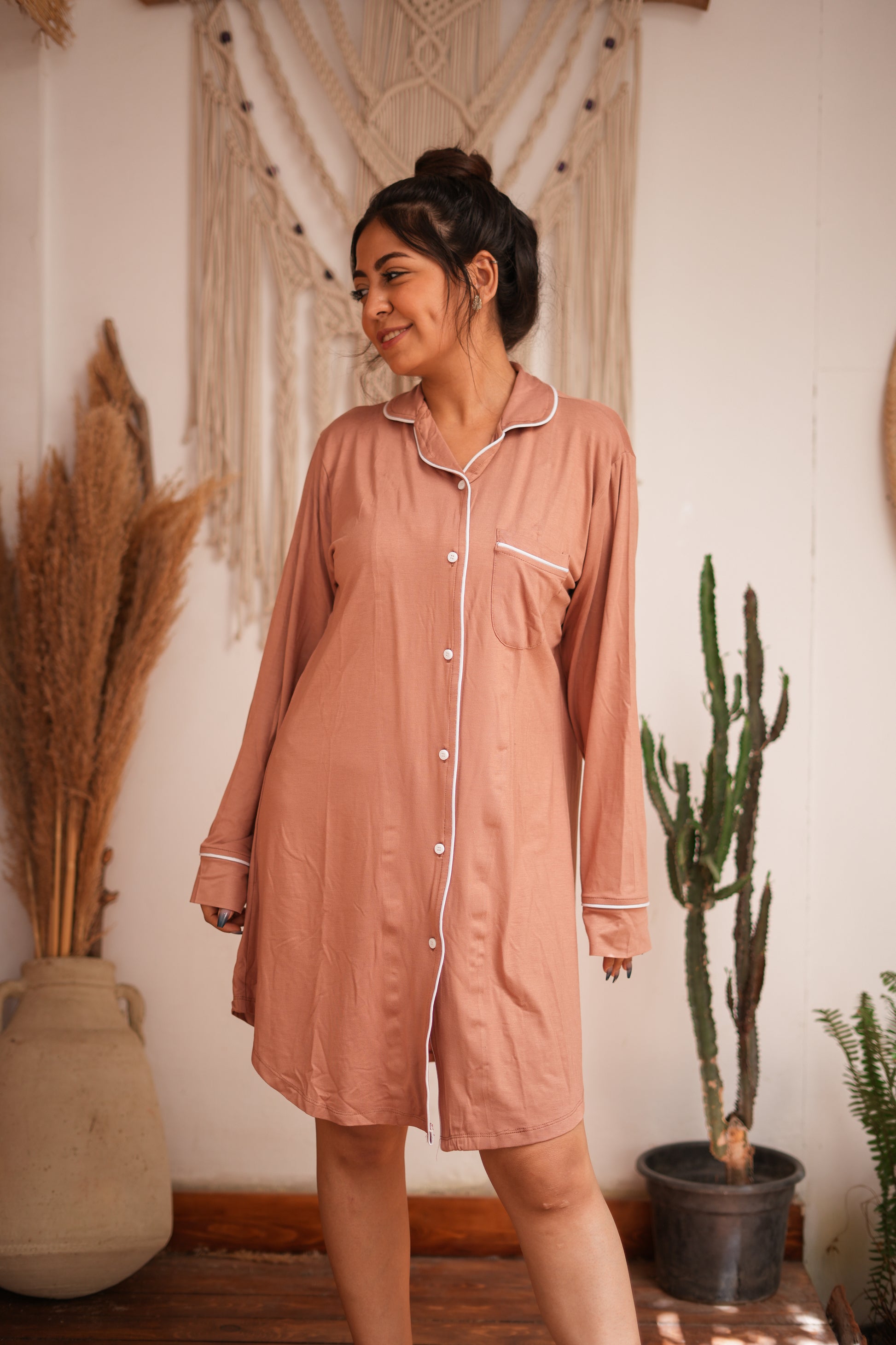 Sienna brown nightdress long sleeves
