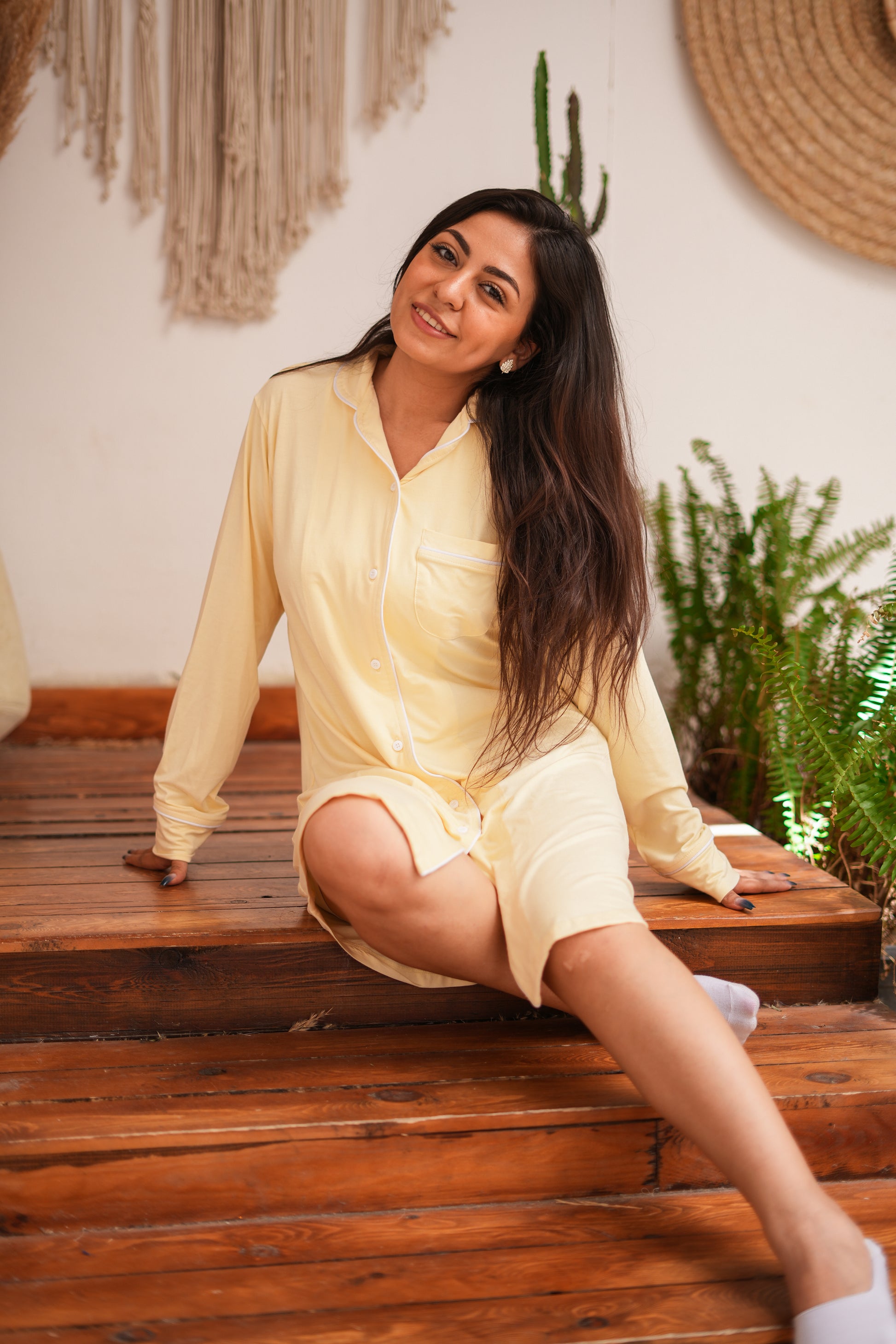 Button down frontLong Sleeves Top patch pocketCurved hem Soft stretchable fabricFabric: cotton lycra